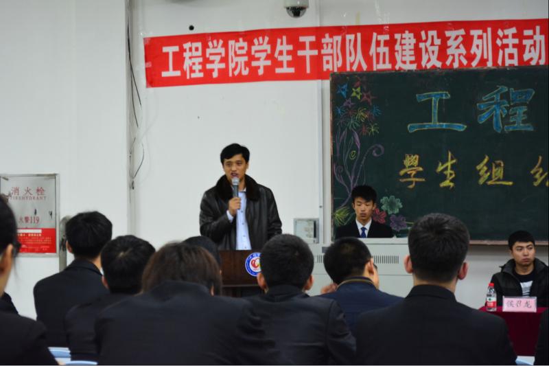 工程學(xué)院為了進(jìn)一步加強(qiáng)學(xué)生干部隊(duì)伍建設(shè),提升學(xué)生干部的綜合素質(zhì),進(jìn)而更好的服務(wù)全院師生。于2015年12月2日晚6點(diǎn)在主樓124舉辦了工程學(xué)院學(xué)生干部隊(duì)伍建設(shè)系列活動(dòng)。工程學(xué)院黨委副書(shū)記王艷超、全體輔導(dǎo)員以及學(xué)院各學(xué)生組織學(xué)生干部參加了此次活動(dòng)。
