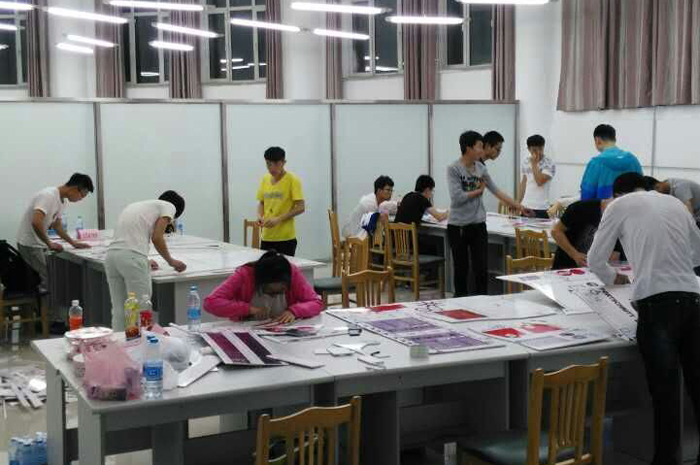 飛行技術(shù)專業(yè)學(xué)員在指導(dǎo)老師的指導(dǎo)下制作飛機(jī)模型
