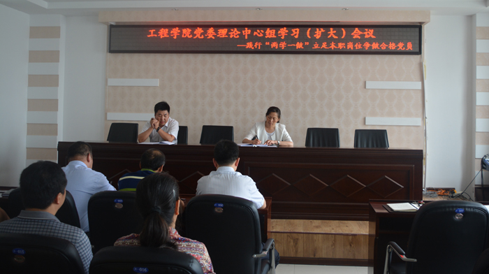 6月24日,工程學院召開傳達學習習近平總書記考察龍江時的重要講話精神暨“兩學一做”理論學習中心組系列學習擴大會議,會議由學院黨委申玉軍書記主持,學院領導班子成員、分團委全體政治輔導員以及全體教師參加會議。