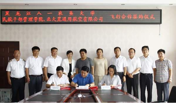 李佐同書記代表我校與北大荒通用航空有限公司總經(jīng)理郭慶才、中國民航干部管理學(xué)院院長孫曉梅簽訂了三方關(guān)于飛行培訓(xùn)業(yè)務(wù)合作框架協(xié)議。
