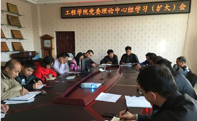 ,我院召開了“兩學一做”學習教育推進會暨黨委理論學習中心組學習(擴大)會,會議傳達貫徹學校組織部下一階段“兩學一做”學習教育的部署和要求,學院黨委委員及各黨支部書記參加會議,申玉軍書記主持會議。