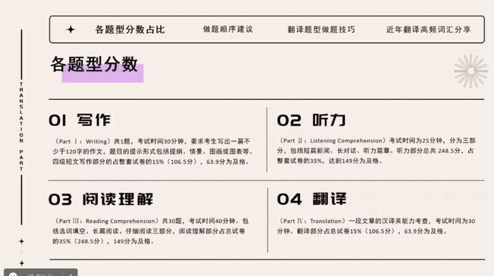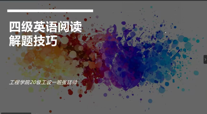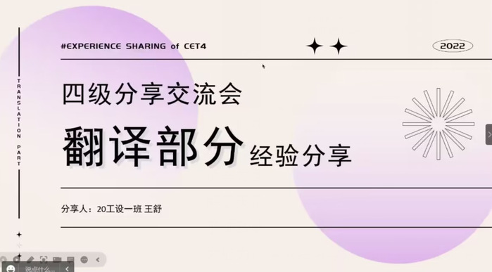 兩次活動(dòng)主要針對(duì)同學(xué)們對(duì)四級(jí)的疑惑之處,分別從復(fù)習(xí)應(yīng)考的心態(tài)、復(fù)習(xí)范圍、應(yīng)試技巧以及注意事項(xiàng)、四級(jí)知識(shí)點(diǎn)方面同大家進(jìn)行分享。會(huì)上,受邀成員向大家講解了英語考級(jí)各種題型所占分?jǐn)?shù),并對(duì)各種題型進(jìn)行了細(xì)致解讀,同時(shí)也分享了他們?cè)谠~匯積累、聽力技巧、模擬練習(xí)等方面的經(jīng)驗(yàn),使大家在即將到來的英語四六級(jí)考試中有所準(zhǔn)備,提高通過率,提高學(xué)習(xí)英語的積極性,從而提高同學(xué)們的整體英語水平。