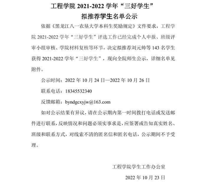 學(xué)院 2021-2022 學(xué)年“三好學(xué)生” 擬推薦學(xué)生名單公示