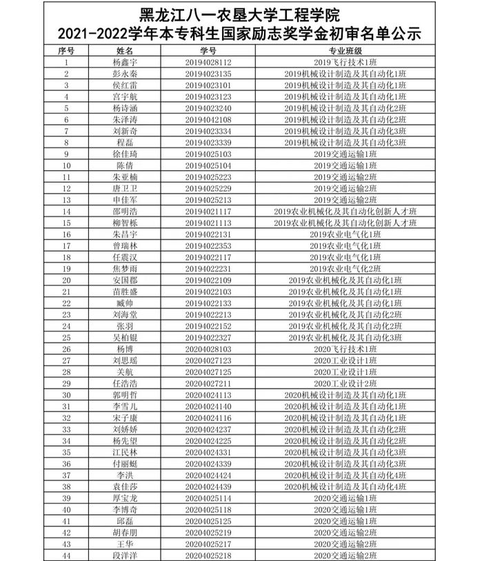 學(xué)院2021-2022學(xué)年本專科生國家勵志獎學(xué)金初審名單公示