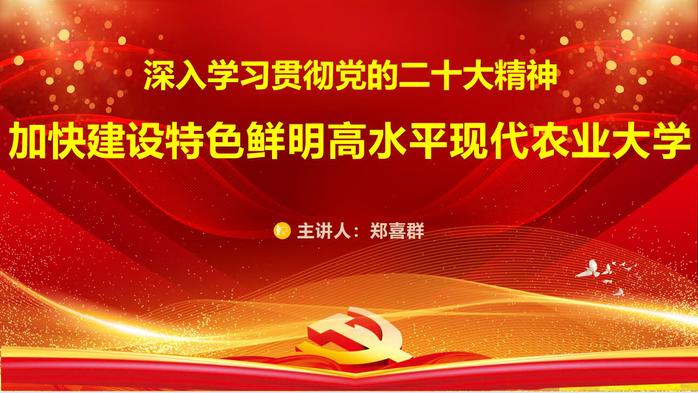 鄭喜群強調,全校廣大師生員工學習宣傳黨的二十大精神要原原本本學、全面系統(tǒng)學,堅持個人自學與集體學習相結合,理論學習與實踐鍛煉相結合,深入學習領會、全面準確把握黨的二十大提出的一系列新的重要思想、重要觀點、重大判斷、重大舉措,深刻領悟“兩個確立”的決定性意義,堅決做到“兩個維護”。帶著信念、感情、使命學,感悟蘊含的強大真理力量,體會蘊藏的獨特思想魅力,真正做到學深悟透、融會貫通、真信篤行,真正做到內化于心、外化于行,為學校落實“十四五”事業(yè)發(fā)展規(guī)劃、實現(xiàn)建設特色鮮明的高水平現(xiàn)代農業(yè)大學目標,為全面建設社會主義現(xiàn)代化國家而不懈奮斗!