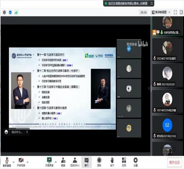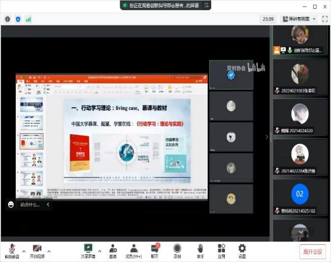 在本次講座中,華東理工大學(xué)的陳萬思老師從行動學(xué)習(xí)理論、行動學(xué)習(xí)實踐、團(tuán)隊行動學(xué)習(xí)三個部分向同學(xué)們介紹了雙創(chuàng)課程的行動學(xué)習(xí)部分,通過理論與實例結(jié)合的方式強(qiáng)調(diào)了行動學(xué)習(xí)的重要性,向同學(xué)們分享了行動學(xué)習(xí)的方法,提升了我院學(xué)生的創(chuàng)新創(chuàng)業(yè)能力。