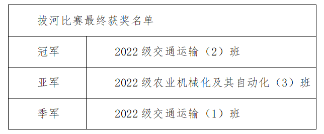 通過此次拔河活動(dòng),我深刻感受到了大家的集體意識(shí)和拼搏精神。雖然我們班沒有得到冠軍,但我認(rèn)為從中我們不單單收獲了快樂,一定程度上還緩解了學(xué)習(xí)帶來的壓力,在強(qiáng)健體魄的同時(shí)促進(jìn)了精神健康,展現(xiàn)出工程學(xué)子的昂揚(yáng)風(fēng)貌。農(nóng)機(jī)三班的拼搏精神、頑強(qiáng)的意志、集體榮譽(yù)感、對(duì)比賽的投入都是我們不可多得的收獲。