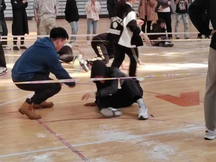 游戲規(guī)則:每個組織派5人,游戲開始時會播放音樂,參賽者當(dāng)聽到音樂停止時三秒后準(zhǔn)備起跳拍照,各參賽者盡力使自己的面部露出,可以互相遮擋干擾拍照。拍照結(jié)束后,在區(qū)域內(nèi)且照片中露出面部的成員即可進(jìn)行下輪比賽,未達(dá)到標(biāo)準(zhǔn)則淘汰,最后一位則達(dá)到出彩,按照淘汰順序,最后三位為第一名,第二名,第三名。