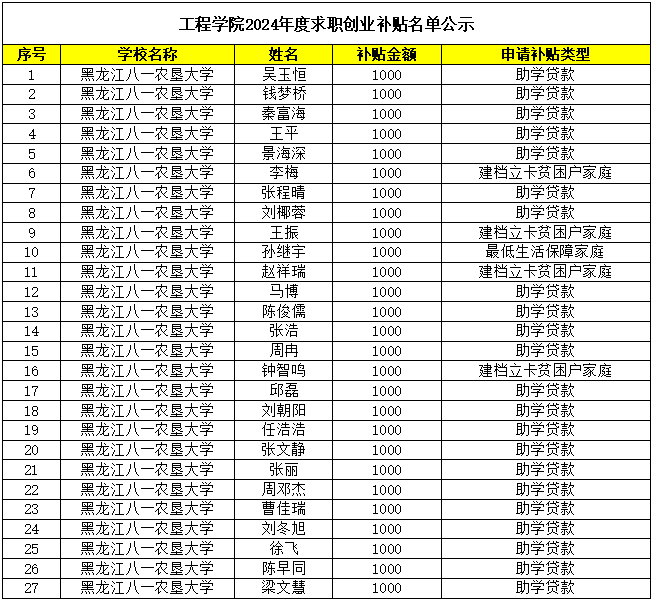 工程學院2024年度求職創(chuàng)業(yè)補貼名單公示