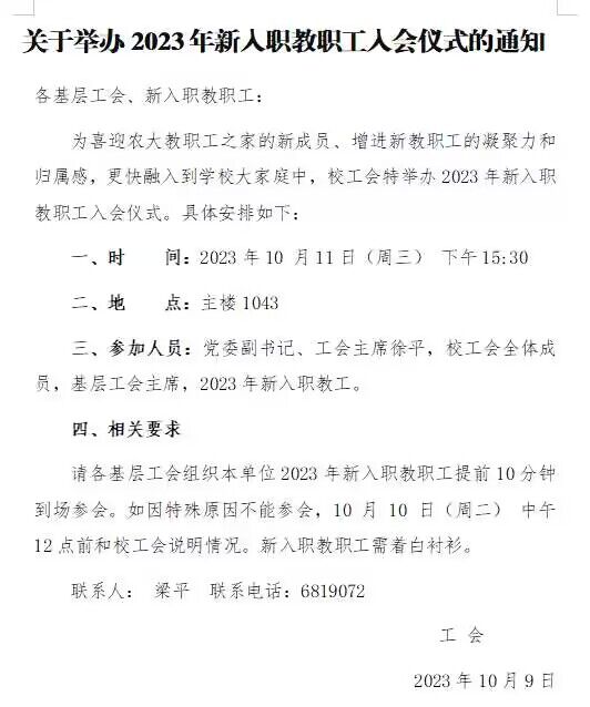 關(guān)于舉辦2023年新入職教職工入會(huì)儀式的通知