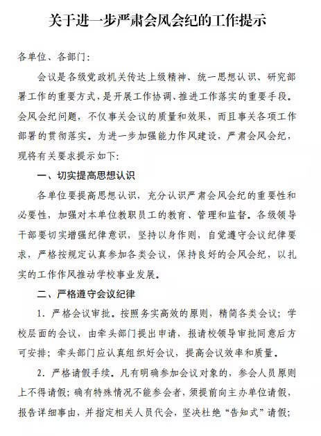 學(xué)校關(guān)于進(jìn)一步嚴(yán)肅會(huì)風(fēng)會(huì)紀(jì)的工作指示