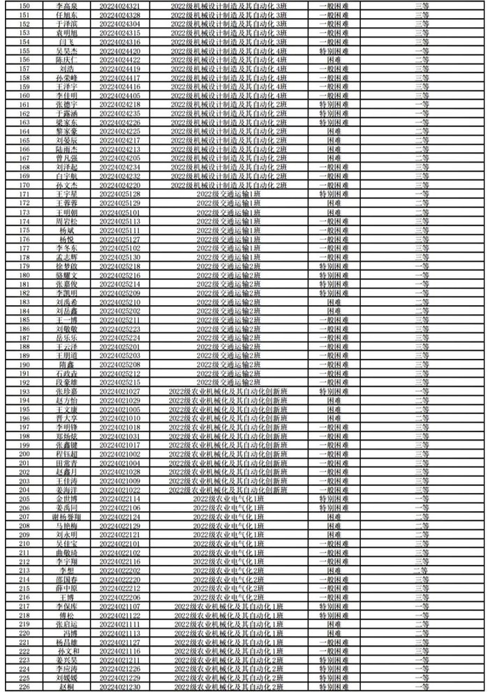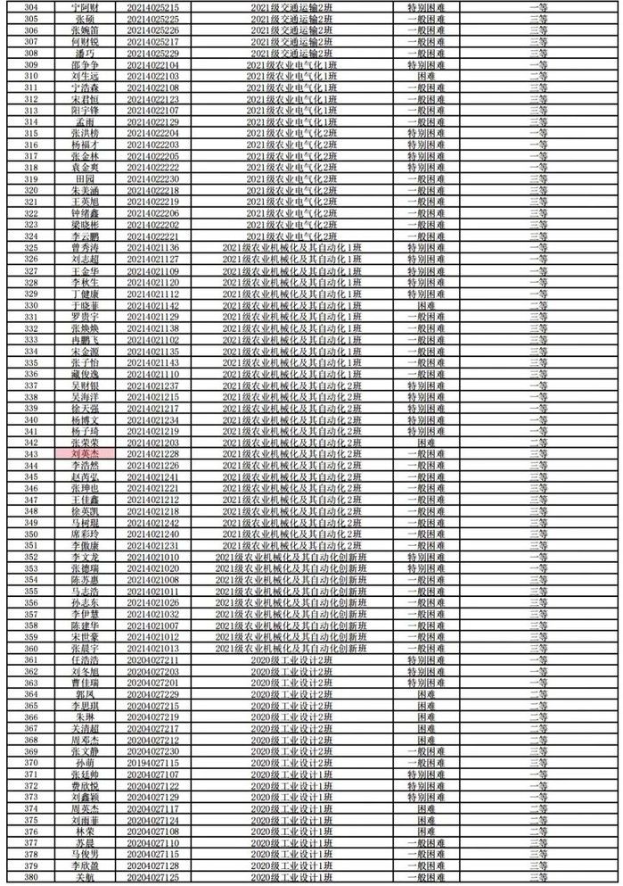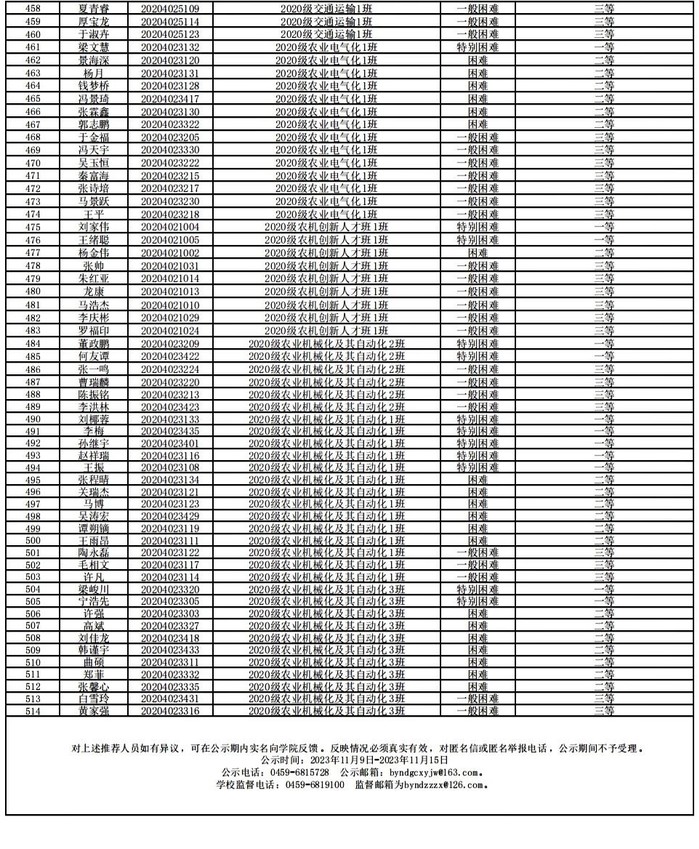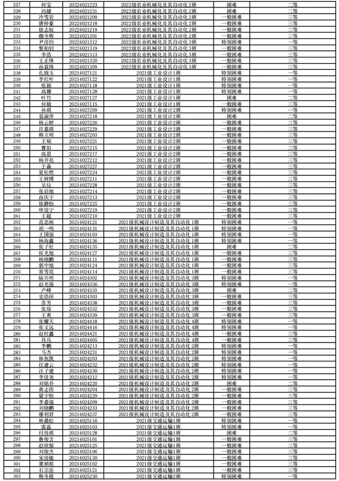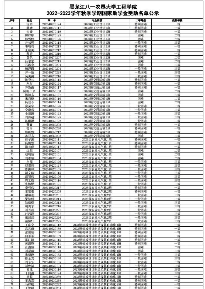 工程學(xué)院2022-2023學(xué)年秋季學(xué)期國家助學(xué)金受助名單公示