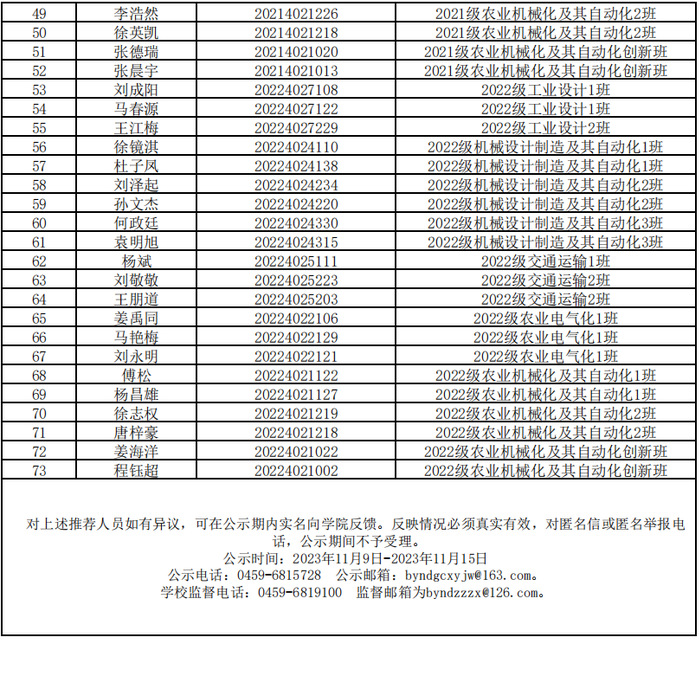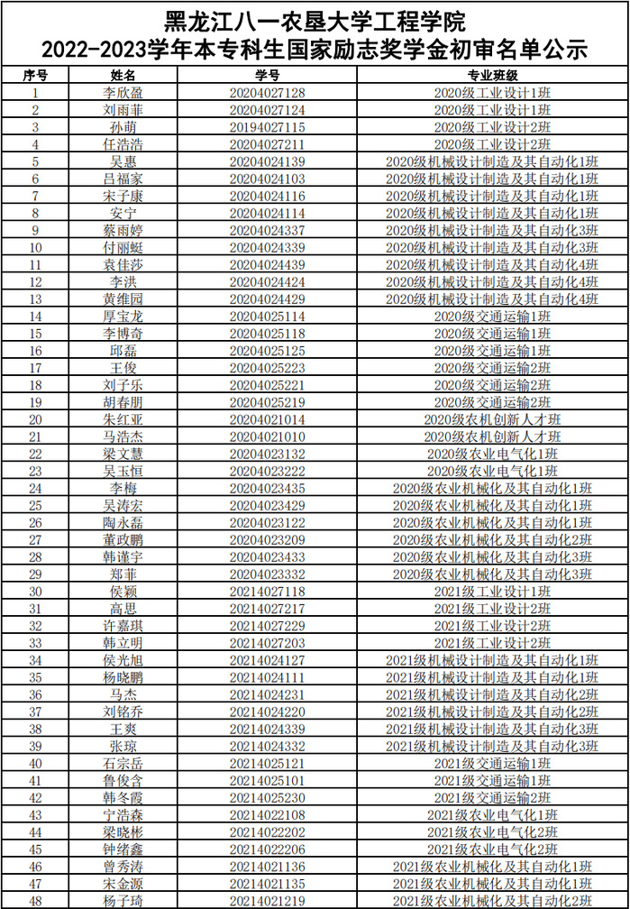 工程學院2022-2023學年本專科生國家勵志獎學金初審名單公示