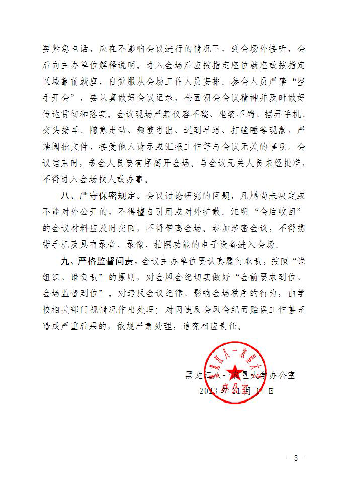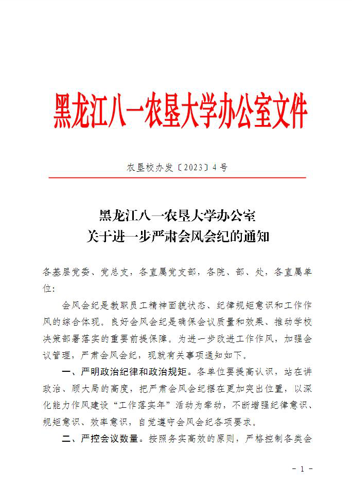 附件:《黑龍江八一農(nóng)墾大學(xué)辦公室關(guān)于進(jìn)一步嚴(yán)肅會風(fēng)會紀(jì)的通知》