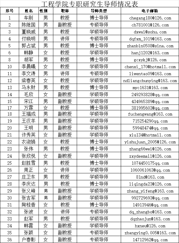 工程學(xué)院專職研究生導(dǎo)師情況表
