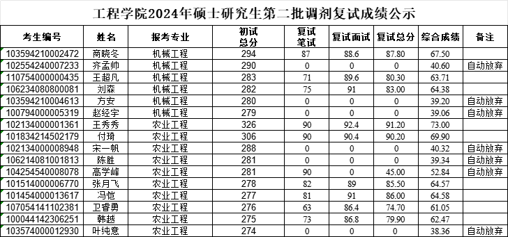 工程學(xué)院2024年碩士研究生第二批調(diào)劑復(fù)試成績公示