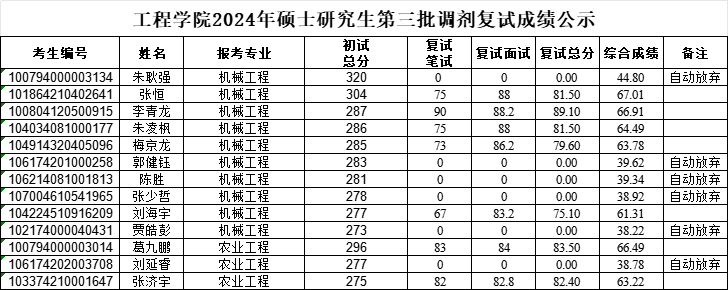 工程學(xué)院2024年碩士研究生第三批調(diào)劑復(fù)試成績公示