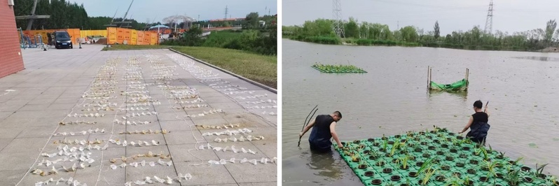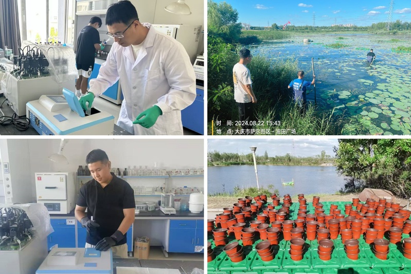 7月12日至8月30日期間,李晨曦教授團(tuán)隊(duì)利用微藻技術(shù)在讓胡路油田廣場(chǎng)開展了為期一個(gè)半月的水體修復(fù)科研試驗(yàn)。團(tuán)隊(duì)成員搭建實(shí)驗(yàn)現(xiàn)場(chǎng),完成了浮床拼裝、水生植物栽植和微藻投放等工作,同時(shí)定期采集水樣和氣樣,并在工程學(xué)院生物質(zhì)實(shí)驗(yàn)室進(jìn)行總氮、氨氮、總磷、pH值、化學(xué)需氧量等指標(biāo)檢測(cè)。試驗(yàn)旨在通過微藻技術(shù)改善水質(zhì),并研究微藻及水生植物的資源化可行性,為可再生能源的開發(fā)和利用提供新思路。