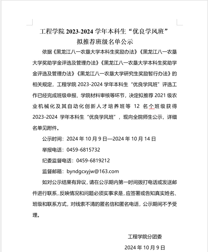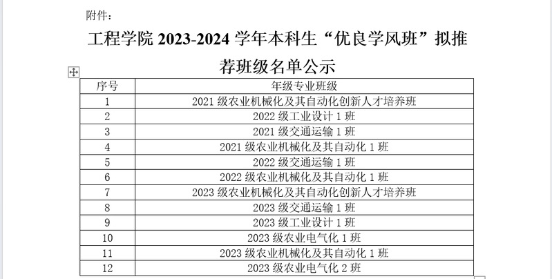 工程學(xué)院2023-2024學(xué)年本科生“優(yōu)良學(xué)風(fēng)班”擬推薦班級(jí)名單公示