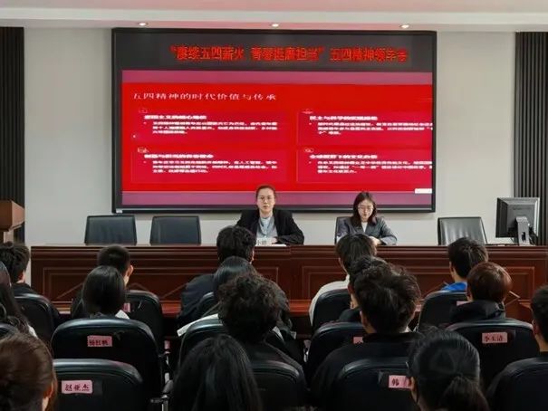 團(tuán)課上,王小婷通過理論講解、案例分享、互動交流多元形式,帶領(lǐng)同學(xué)們深入學(xué)習(xí)五四精神“愛國、進(jìn)步、民主、科學(xué)”的核心內(nèi)涵,在歷史與現(xiàn)實的碰撞中探尋新時代青年的使命與擔(dān)當(dāng)。