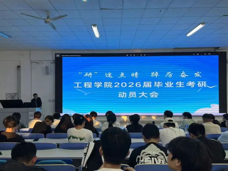 此次考研動(dòng)員會(huì)的成功舉辦,為2026屆考研學(xué)子指明了方向,增強(qiáng)了他們的考研信心,激發(fā)了同學(xué)們的備考熱情。后續(xù),工程學(xué)院還將陸續(xù)開(kāi)展考研經(jīng)驗(yàn)分享會(huì)、學(xué)習(xí)小組幫扶、一對(duì)一輔導(dǎo)等活動(dòng),為考研學(xué)子提供全方位、全過(guò)程的支持與服務(wù),助力他們?cè)诳佳械牡缆飞铣孙L(fēng)破浪,成功上岸。