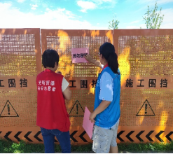 在社區(qū)巡河工作中,楊婉鈺與志愿者團(tuán)隊(duì)重點(diǎn)關(guān)注轄區(qū)河道水位變化。因強(qiáng)降雨導(dǎo)致河道河水上漲,為避免居民靠近河道發(fā)生危險(xiǎn),社區(qū)設(shè)置施工圍擋進(jìn)行隔離。楊婉鈺積極參與圍擋警示標(biāo)識張貼工作,與同伴協(xié)作,將“請勿攀爬” 警示標(biāo)語逐一固定在圍擋顯著位置,提醒居民遠(yuǎn)離危險(xiǎn)區(qū)域,從細(xì)微處織密安全防護(hù)網(wǎng) 。