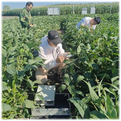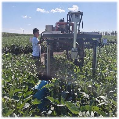 為系統(tǒng)構(gòu)建大豆生長數(shù)據(jù)庫,團隊專項搭建田間信息采集平臺,部署灰度相機、魚眼相機等專業(yè)設(shè)備,持續(xù)采集大豆株高、莖粗等物理性狀及透光率指標;同時,對以兩種不同密度種植的10個大豆主栽品種開展光合速率測量,不僅成功篩選出光合能力突出的優(yōu)良品種,更深入探索出適配不同品種的最優(yōu)種植密度,為育種研究與栽培技術(shù)優(yōu)化提供了雙重數(shù)據(jù)支撐。此外,團隊安裝調(diào)試的大豆花莢檢測裝置,可精準統(tǒng)計花數(shù)、落花數(shù)、成莢數(shù)等關(guān)鍵指標,為科學(xué)評估產(chǎn)量潛力提供了重要依據(jù)。