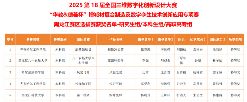 近日,第18屆全國(guó)全國(guó)3D大賽“華教&德薈杯”增減材復(fù)合制造及數(shù)字孿生技術(shù)創(chuàng)新應(yīng)用專(zhuān)項(xiàng)賽黑龍江賽區(qū)選拔賽在黑龍江工程學(xué)院落下帷幕。本次大賽以“智創(chuàng)融合?孿生賦能”為主題,由全國(guó)三維數(shù)字化創(chuàng)新設(shè)計(jì)大賽組委會(huì)、國(guó)家制造業(yè)信息化培訓(xùn)中心、全國(guó)3D技術(shù)推廣服務(wù)與教育培訓(xùn)聯(lián)盟、北京光華設(shè)計(jì)發(fā)展基金會(huì)主辦,黑龍江工程學(xué)院、哈爾濱市總工會(huì)、黑龍江工程學(xué)院大學(xué)科技園、道外區(qū)數(shù)字經(jīng)濟(jì)示范園區(qū)共同承辦。來(lái)自我省近10所高校的30多支參賽隊(duì)伍參加比賽。我院參賽隊(duì)伍憑借扎實(shí)的專(zhuān)業(yè)能力與創(chuàng)新實(shí)踐,一舉斬獲特等獎(jiǎng),并成功突圍,作為黑龍江賽區(qū)九所入圍國(guó)賽的院校之一,將代表我省于11月14日至16日赴北京石油化工學(xué)院參加全國(guó)總決賽。