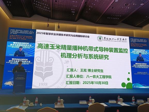 本屆國際研討會聚焦智慧農(nóng)業(yè)核心關(guān)鍵技術(shù)攻關(guān)與智能農(nóng)機裝備產(chǎn)業(yè)升級,會上,姜偉教授與王淞博士分別作了《嚴寒地區(qū)溫室節(jié)能與環(huán)境協(xié)同優(yōu)化》和《高速玉米精量播種機帶式導(dǎo)種裝置監(jiān)控機理分析與系統(tǒng)研究》的專題報告。兩項研究成果直面我國高緯度寒地農(nóng)業(yè)生產(chǎn)的特殊挑戰(zhàn),提出了創(chuàng)新性的技術(shù)路徑與解決方案,展現(xiàn)了八一農(nóng)大立足區(qū)域、服務(wù)國家的使命擔當,報告引發(fā)了與會國內(nèi)外專家的高度關(guān)注與熱烈討論。