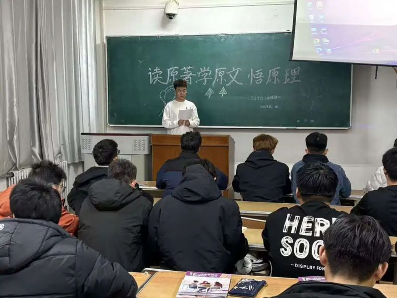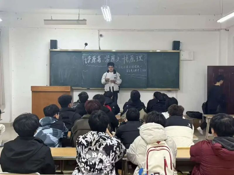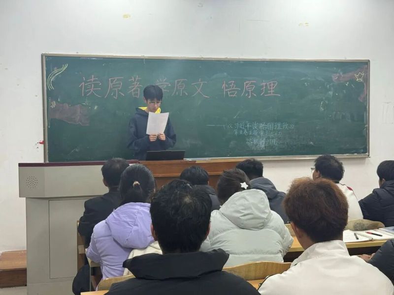 學習活動現(xiàn)場,各班班長、團支書帶頭分段領(lǐng)讀《習近平談治國理政》第五卷中第一篇章《以中國式現(xiàn)代化全面推進中華民族偉大復興》。全體同學神情專注,積極參與,學習氛圍莊重而熱烈。通過原原本本、逐字逐句的誦讀,同學們對習近平新時代中國特色社會主義思想的核心要義、精神實質(zhì)、豐富內(nèi)涵和實踐要求有了更為直觀和深刻的認識。