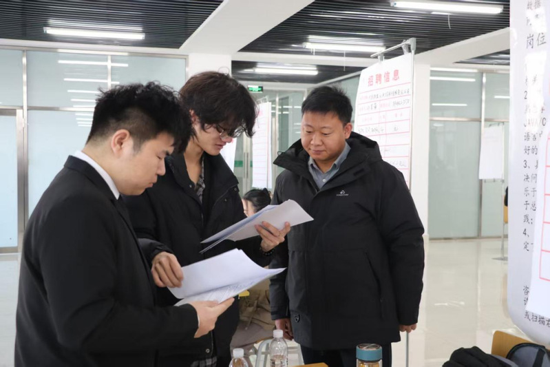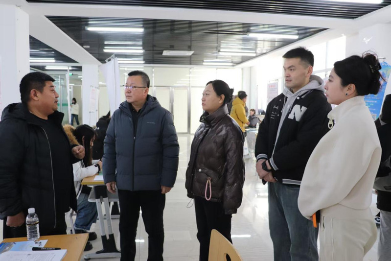 學(xué)院黨委書記姜玉美、院長馬永財、輔導(dǎo)員邢伯文、張欣欣與企業(yè)深入對接招聘需求、洽談合作方向,同時細致了解畢業(yè)生求職意向、擇業(yè)困惑,為他們精準提供職業(yè)規(guī)劃指導(dǎo)。