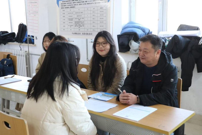 學(xué)院黨委書記姜玉美、院長馬永財、輔導(dǎo)員邢伯文、張欣欣與企業(yè)深入對接招聘需求、洽談合作方向,同時細致了解畢業(yè)生求職意向、擇業(yè)困惑,為他們精準(zhǔn)提供職業(yè)規(guī)劃指導(dǎo)。