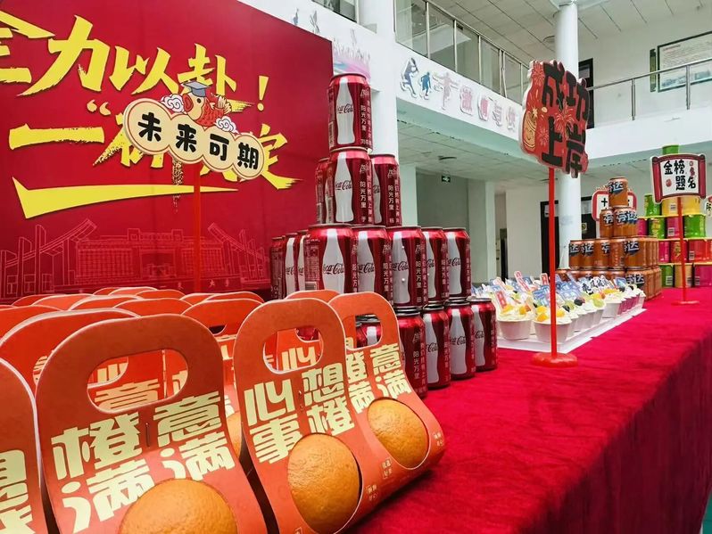 活動(dòng)現(xiàn)場(chǎng)溫馨洋溢,寄托美好寓意的“加油禮”依次排開(kāi):蛋糕象征“步步高升”,祝福學(xué)業(yè)精進(jìn)、前程錦繡;可樂(lè)寓意“百事可樂(lè)”,愿未來(lái)之路順利圓滿;芬達(dá)諧音“分分必拿”,激勵(lì)學(xué)子穩(wěn)扎穩(wěn)打、顆粒歸倉(cāng);橙子代表“心想事成”,期盼努力皆得回報(bào)、夢(mèng)想熠熠生輝。每一份禮物都承載著學(xué)院對(duì)學(xué)子細(xì)致入微的關(guān)愛(ài)與期盼。