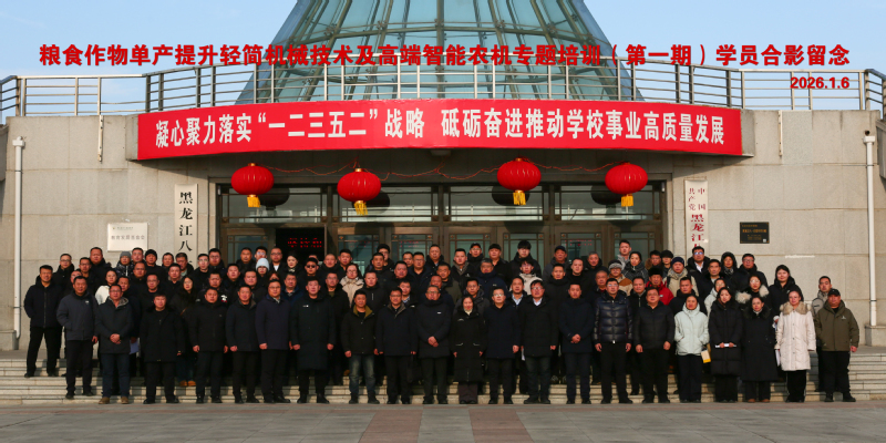 為深入貫徹落實(shí)我省糧油作物大面積單產(chǎn)提升工程有關(guān)要求,按照省農(nóng)業(yè)農(nóng)村廳工作部署,2026年1月6日,全省糧食作物單產(chǎn)提升輕簡機(jī)械化技術(shù)及高端智能農(nóng)機(jī)專題培訓(xùn)在本校召開。省農(nóng)業(yè)農(nóng)村廳農(nóng)機(jī)管理處副處長丁然、北大荒農(nóng)墾集團(tuán)有限公司農(nóng)業(yè)發(fā)展部副部長劉再奇、省農(nóng)機(jī)產(chǎn)業(yè)技術(shù)體系首席專家郭雪峰、省農(nóng)機(jī)推廣總站、北大荒農(nóng)墾集團(tuán)相關(guān)農(nóng)場(chǎng)、各市縣農(nóng)機(jī)推廣中心及工程學(xué)院相關(guān)負(fù)責(zé)同志近130人參與了此次培訓(xùn)。